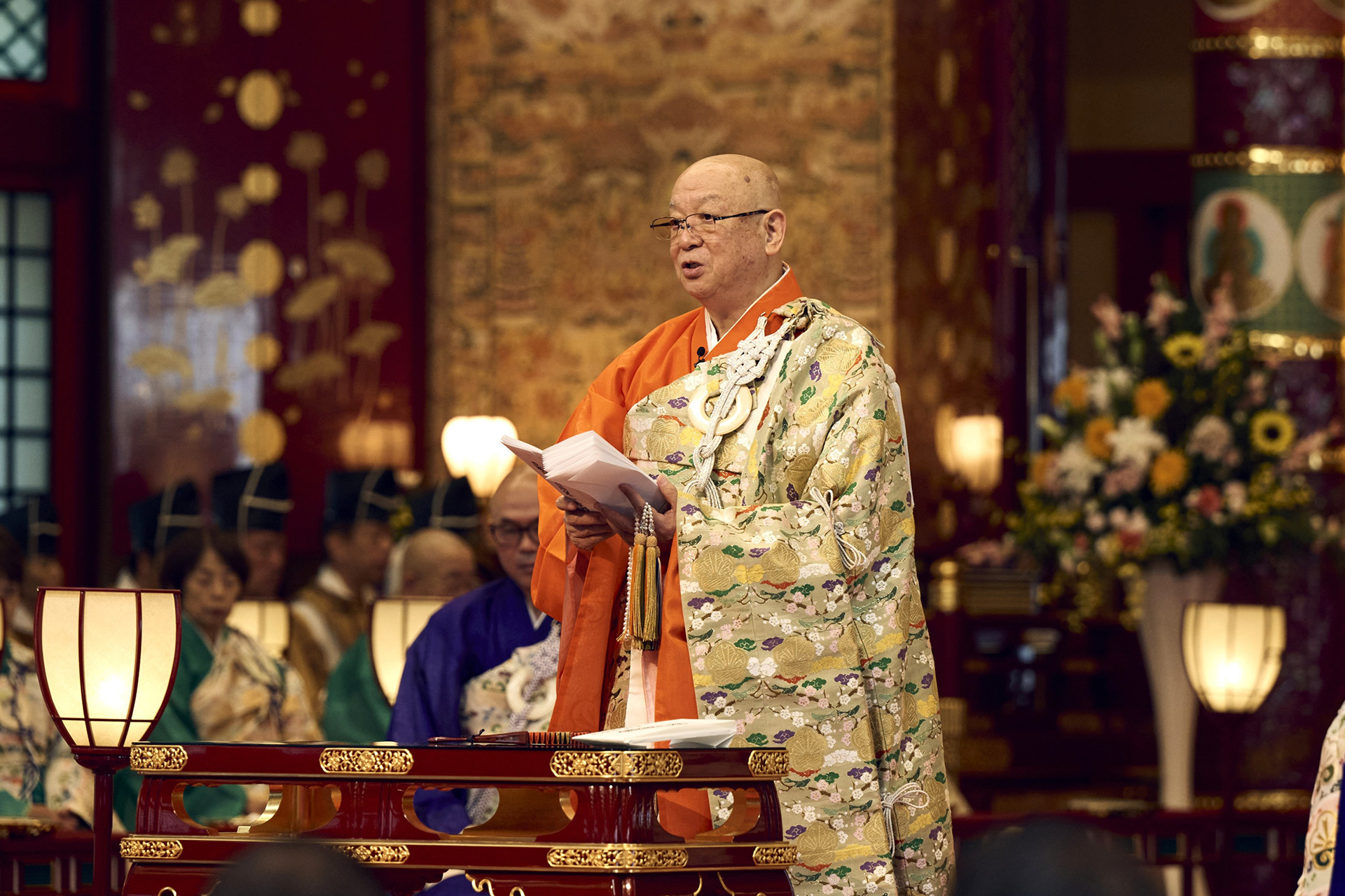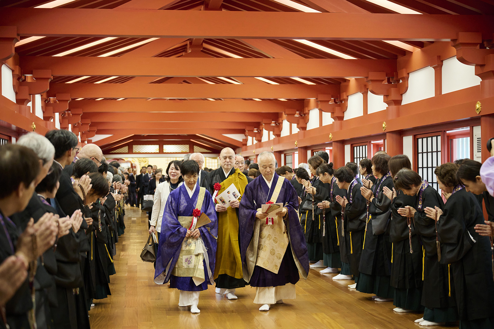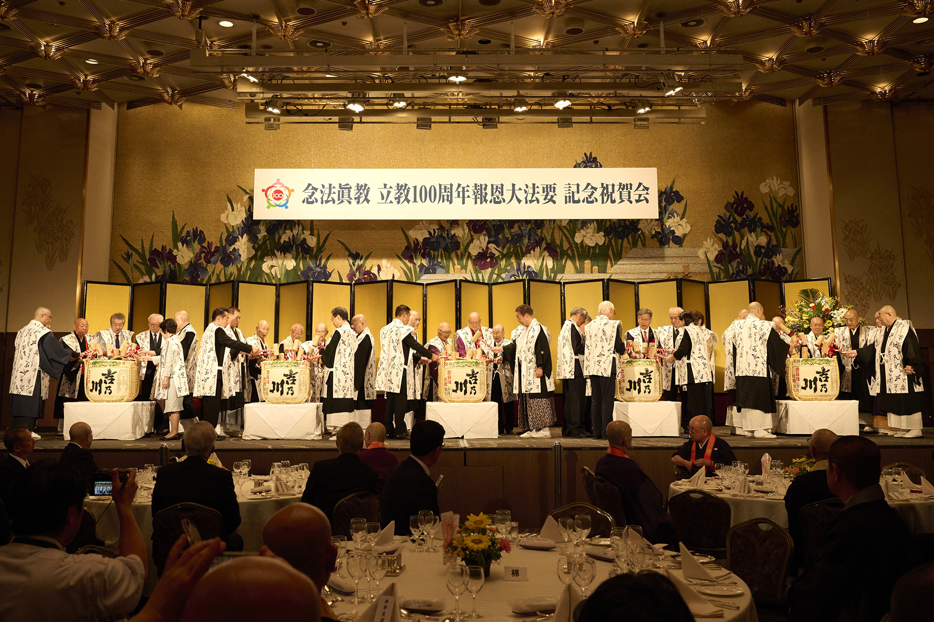 法要後の記念式典では、ご燈主様より「皆様方のお導きで今日を迎えることができ、心から御礼申し上げます。教えの実践は100周年で終わるものではなく、現世界極楽浄土建設を目指して、200年、300年へと続けてまいります」とご挨拶がありました。