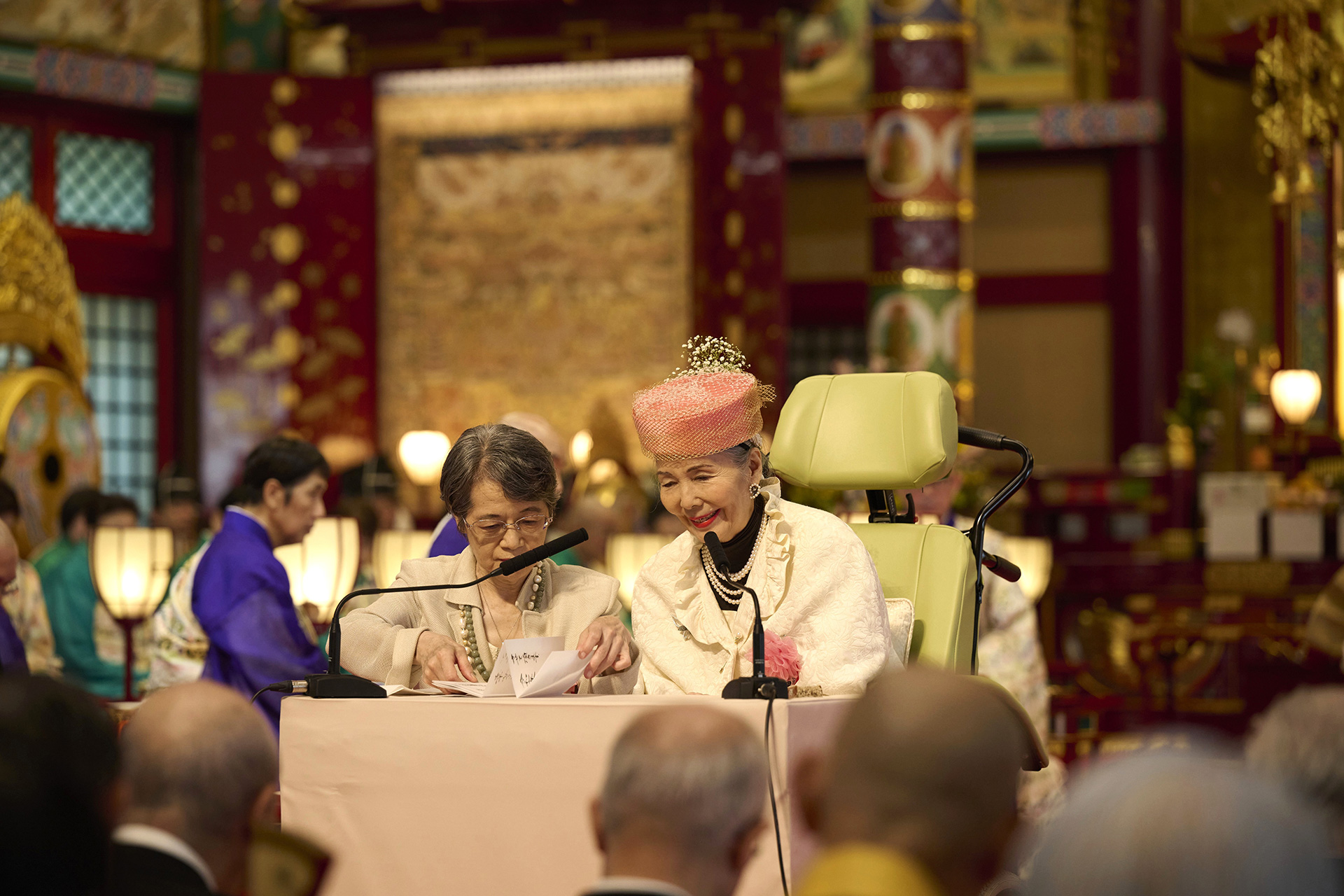続いて、教団代表顧問・東久邇吉子殿下、天台座主・藤光賢猊下、神社本庁総長・田中恆清様、日本大学名誉教授・百地章様、鹿島建設株式会社代表取締役会長・押味至一様より、ご祝辞をいただきました。
